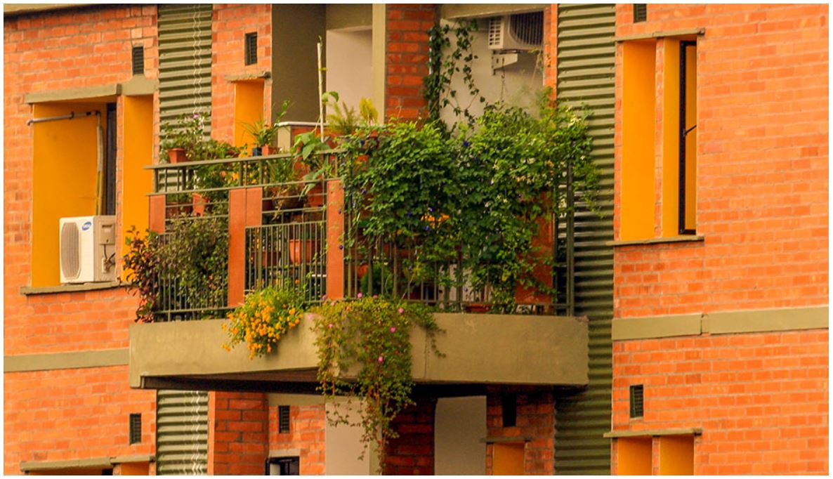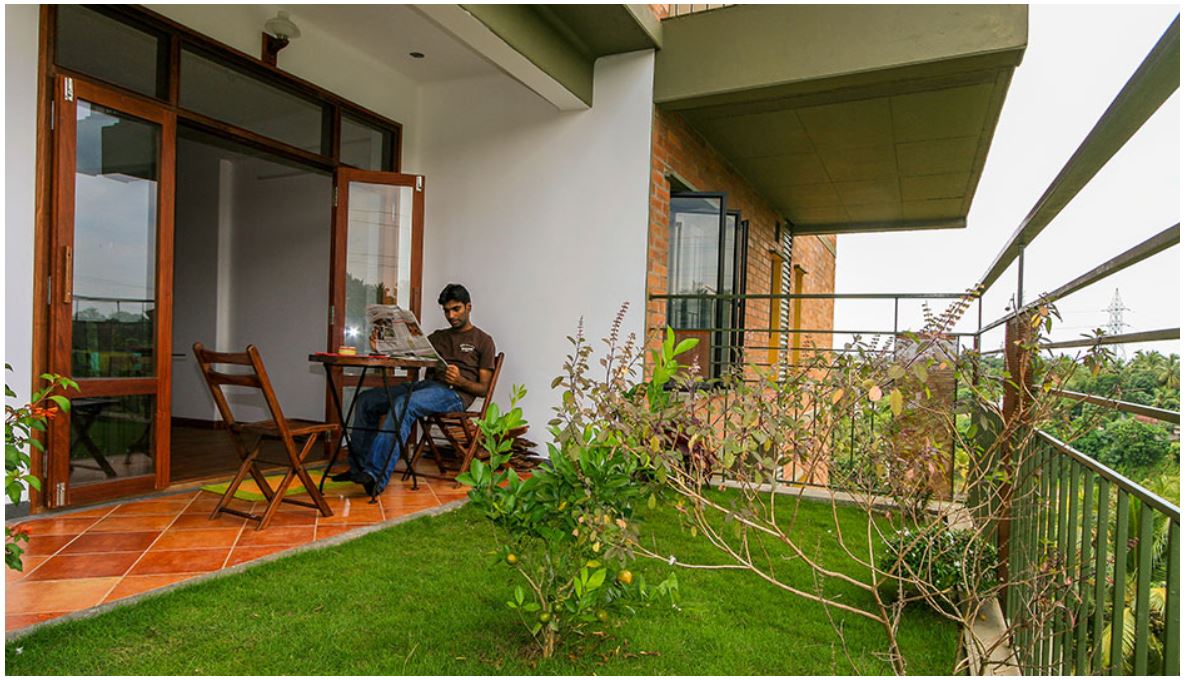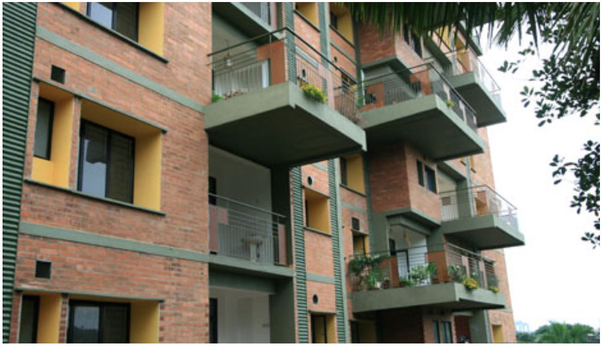 Hymns of life was our first innovation in going vertical. In the past, most of our developments were low rise, and emphasized on the relationship to land, the importance of community spaces.At “Hymns” we have tried to recreate the same character, which has been transformed through what we call “sky gardens”, in each apartment. These are open green terraces which besides creating a bit of the outdoors even at the higher floors break the severity of the scale, making it more human.The design of the sky gardens minimize the heat and moisture on the lower floors, by virtue of protecting the walls below. The landscaped garden, acts as a buffer from the dust, heat and the lashing rain.