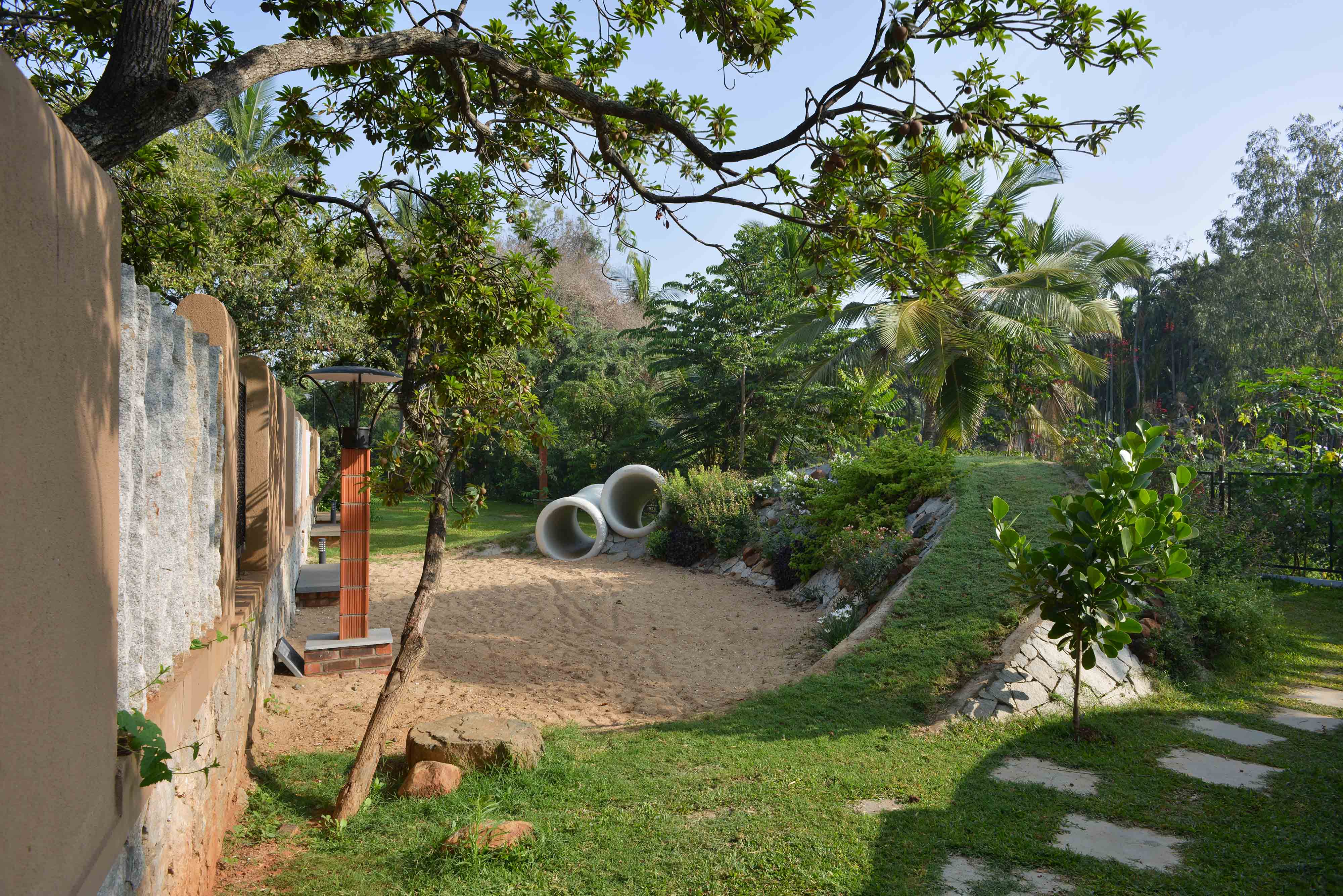 Good earth orchard came into being in the soothing and shaded ambience of chikoo and coconut plantations. The land fitted the bill of designing a community that existed in harmony with nature and encouraged a green lifestyle.Absorbing from traditional concepts of planning and craftsmanship, it integrates contemporary technology and lifestyles in its design. It is designed on a 7 acre piece of land and hosts 57 homes.