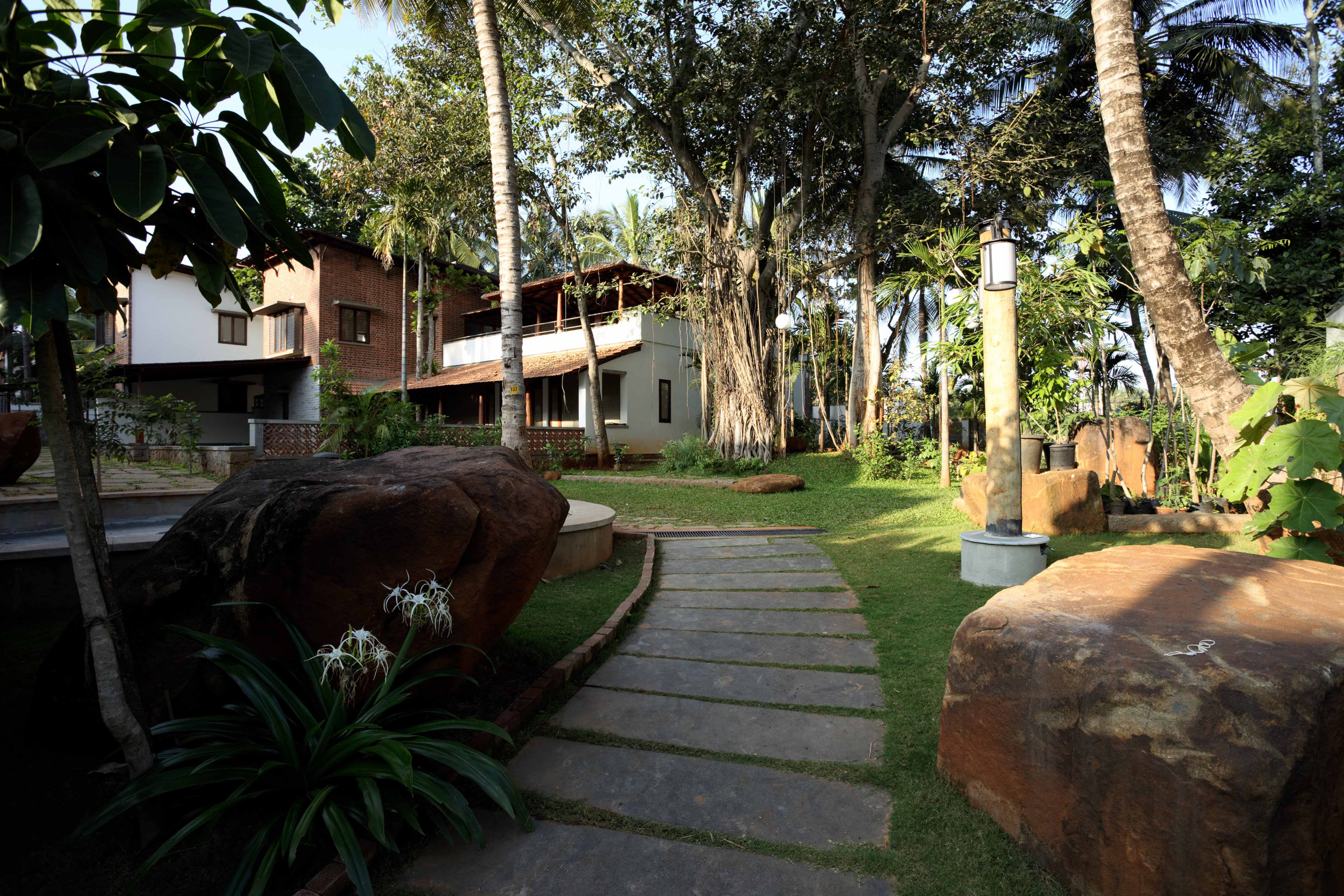 Good Earth PalmGrove is a community of 48 homes set within 8 acres. Built on a coconut farm, the land was breathtakingly beautiful- coconut trees, a banyan tree forming a sacred grove and a terrain which was an exciting challenge to work with. The layout has been planned in a way that helps retain much of the original topography.